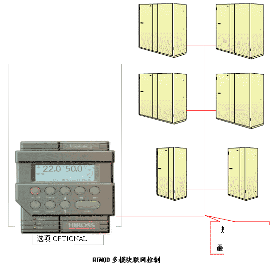 1. 模块化设计。HIMOD的基本模块从20KW到40KW制冷量,分为五个型号。与其他厂家的模块化设计的不同点是,HIMOD系列产品可以根据用户的需要将不同冷量的模块组合成一个制冷系统,每个系统可容纳的最多模块数为16个。在一个系统的每个模块中都有独立的控制器MICROFACE。用户可以在MICROFACE上设定每个模块的工作参数。